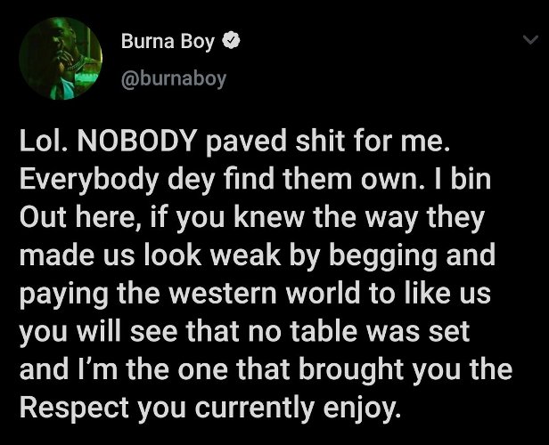 Below are the tweets from Burna Boy and those of many Twitter users who came for him.