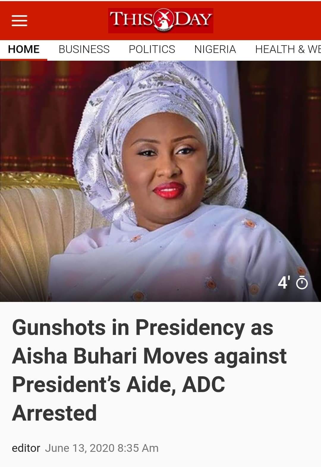 This Day reported that there was a ‘security breach’ at the precincts of the Presidential Villa, State House, Abuja on Thursday night, when the First Lady’s Aide-de-camp, Usman Shugaba, attempted to force President Muhammadu Buhari’s Special Assistant, Sabiu Yusuf, into self -isolation over COVID-19 fears.