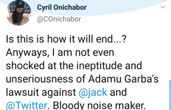 Human Rights lawyer, Tope Akinyode took to Twitter to reveal that he was in court to defend the lawsuit but Garba and his lawyers didn’t show up. Following the comment, Twitter users began to mock Garba for disappearing after filing the suit.