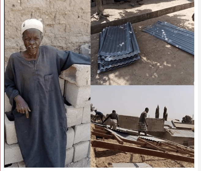 Watch As Helpless Father Removes House Roof To Pay Son’s Ransom [PHOTOS/VIDEO]—-In a viral video making waves in the media space, a Katsina farmer identified as Saidu Faskari has reportedly removed his house’s roofing sheet which he intends to sell to raise the ransom those who kidnapped his eldest son demanded for.