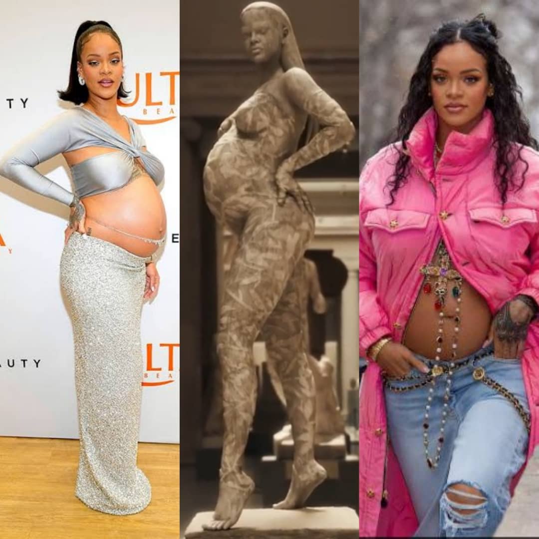 PHOTO: Pregnant #Rihanna Honoured With Marble Statute At Met Gala 2022—-Barbadian Pop Star singer, and international Business Mogul, Rihanna, was honoured with a statue of herself at the Metropolitan Art Museum in New York.