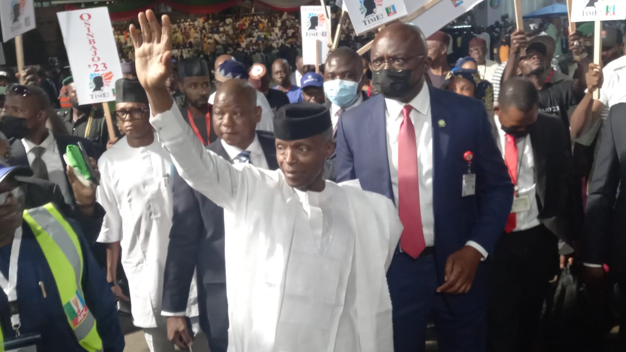BREAKING: #Osinbajo Departs Eagle Square As #Tinubu Leads Massively At #APCPresidentialPrimaries—-Vice President Yemi Osinbajo left Eagles Square the venue of the presidential primary of the ruling All Progressives Congress (APC) early Wednesday morning as it became increasingly clear that his dream of succeeding his boss as Nigeria’s next president may have come to naught.