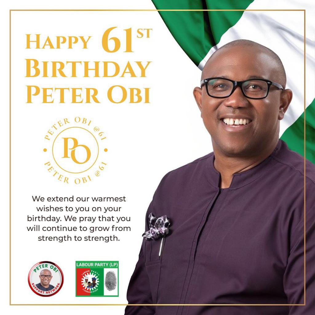 #PeterObiAt61: Group Felicitates Peter Obi At 61—The Civil Liberties Organisation (CLO) has felicitated the Presidential Candidate of Labour Party (LP), Mr Peter Obi, as he clocks 61.