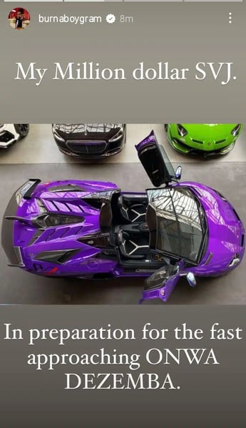 He disclosed that he just purchased a purple Lamborghini and that he spent a million dollars on the car for ONWA DEZEMBA.