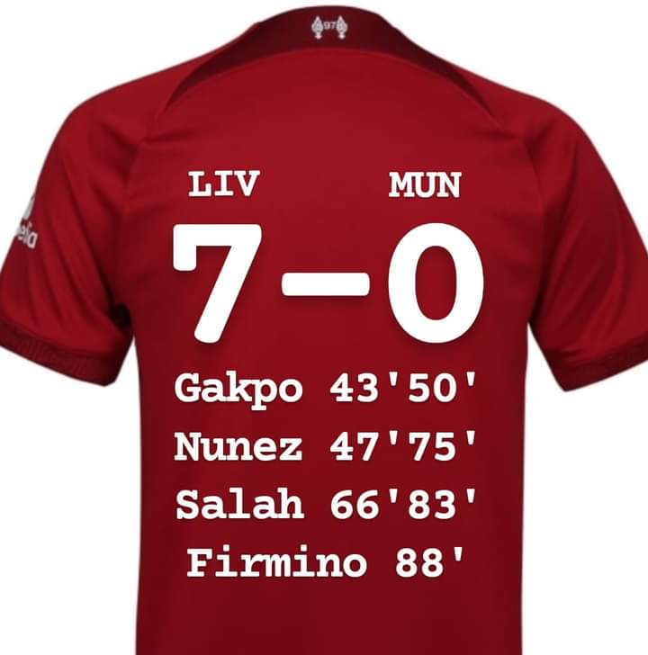 BREAKING: Watch As Jürgen Klopp Led #Liverpool Inflicted Historic 7-0 Thrashing On Man United – #LIVMUN—-The Genius Media Nigeria reports that Cody Gakpo, Darwin Nunez, and Mohamed Salah all scored twice as Liverpool shrugged off a season of frustration to thrash Manchester United 7-0 at Anfield on Sunday.