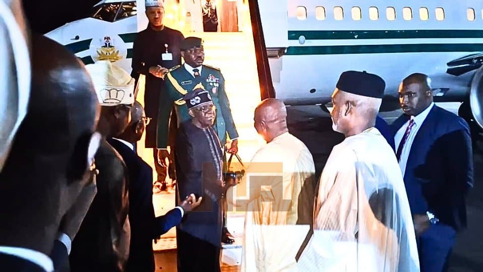 HAPPENING NOW!!! President Bola Tinubu Arrives In Guinea-Bissau [PHOTO]—President Bola Tinubu has arrived in Guinea-Bissau to honour the invitation to the 50th Independence Day commemoration of the nation.