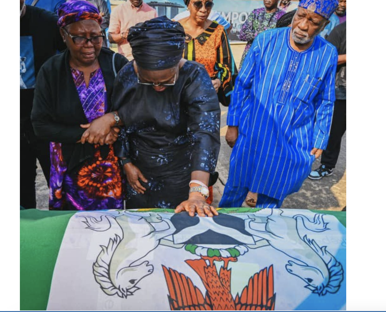 “Lagos State Governor, Mr Babajide Sanwo-Olu, represented by his Chief of Staff, Mr Tayo Ayinde; Ogun State Governor, Prince Dapo Abiodun, represented by the Secretary to the State Government, Mr Tokunbo Talabi; and representative of Osun State Governor, Senator Demola Adeleke also joined in receiving the body.